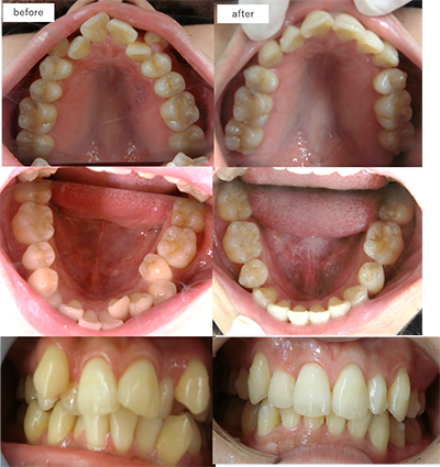 | 治療の内容・詳細 | 主訴のすき間がなくなり。きれいな歯並びになりました。咬み合わせにも注意しています。 |